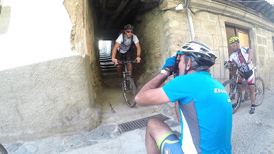 Montámos nas bicicletas um pouco acima da localidade de Tornavacas, a partir daí foi (quase) sempre a descer até final da etapa. Começámos com alguns quilómetros por um caminho em cimento armado e passagens pelo interior de pequenas e típicas aldeias. Um pouco à frente entrámos na terra batida, realizando alguns quilómetros da Rota D Carlos V, toda ela devidamente sinalizada, com alguns single-tracks - um percurso excelente para umas descidas "à bruta" ou parafraseando o grito dos nossos amigos espanhóis, aqui... "no ay amigos".