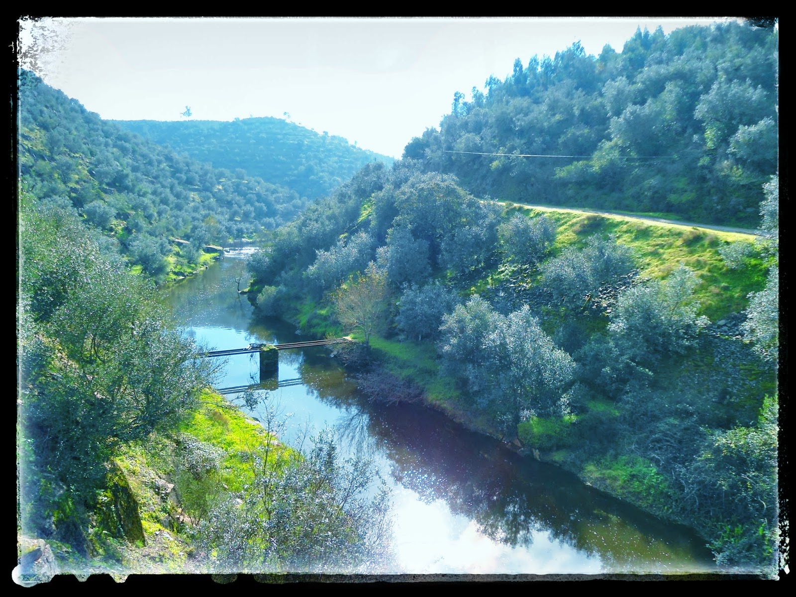 A primeira linha de água foi ultrapassada sobre uma ponte em pedra, muito bem conservada. Surpreendentemente apercebi-me de que o percurso que estávamos a traçar era coincidente com um itinerário do Caminho de Santiago, que mais tarde e após alguma pesquisa vim a saber tratar-se do Caminho D'Este, que liga as cidades de Tavira e da Guarda.