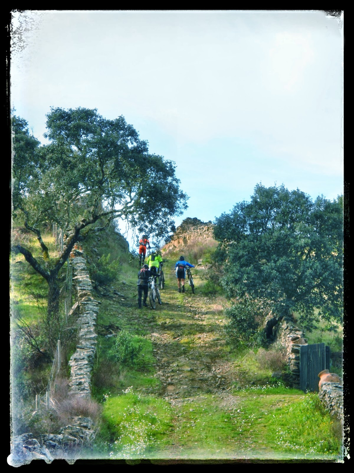 Já prestes a passarmos a fronteira natural Alto Alentejo/Beira Baixa, numa descida rápida, deparámos-nos com um eucalipto de médias dimensões a barrar totalmente o caminho, o que nos levou a colocar as biclas às costas para podermos seguir viagem.