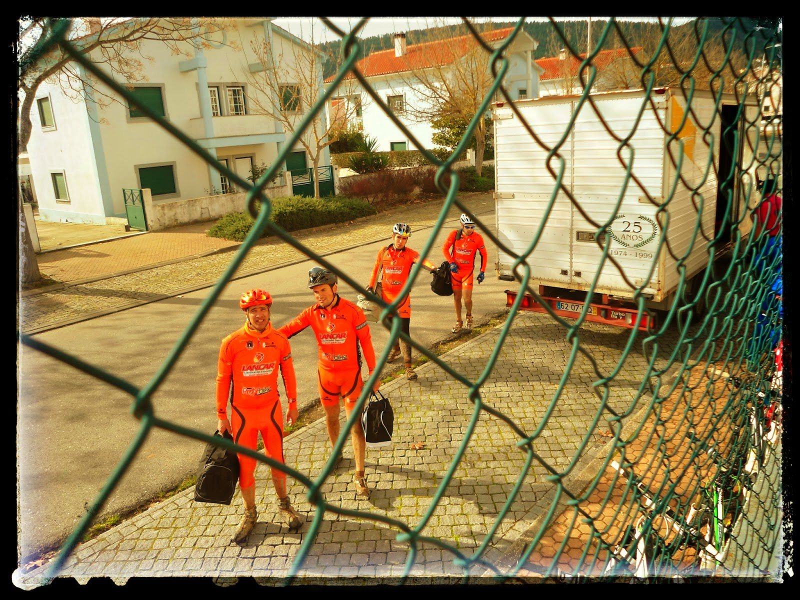 Após o almoço é que a porca torceu o rabo. Tivemos de esperar até às 16H00 pelo transporte de regresso à Flor da Rosa, a 70km, onde deixáramos os carros. Como a camioneta destinada a levar as bikes não era muito grande, por azar as nossas não couberam na primeira carga e tiveram de ficar em terra ao cuidado da Organização para seguir na 2.ª carrada, enquanto nós fomos transportados de autocarro.