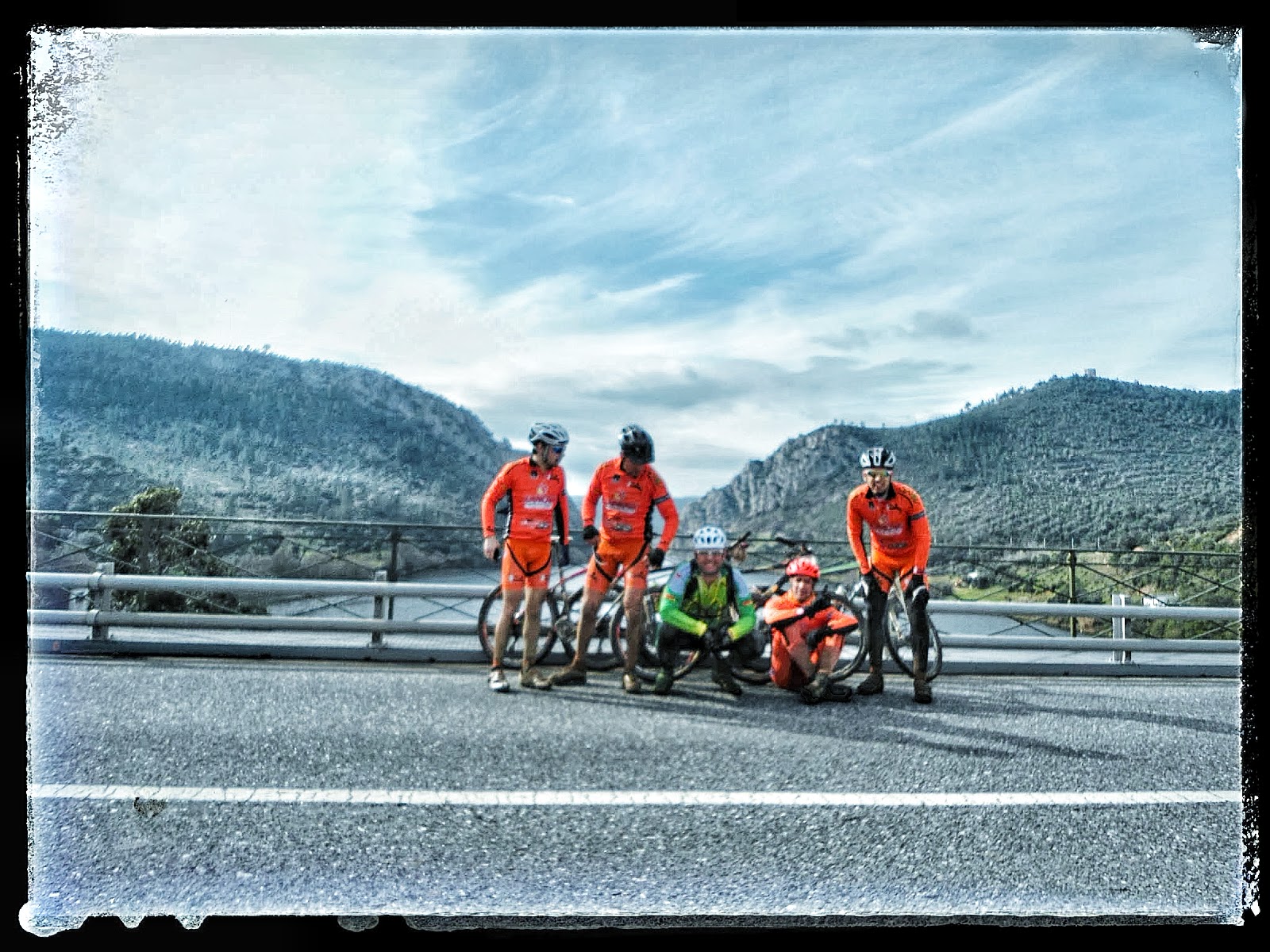 Foto da equipa na chegada a Vila Velha de Ródão, com a paisagem natural ao fundo: Portas de Ródão e Rio Tejo. Esplêndido!