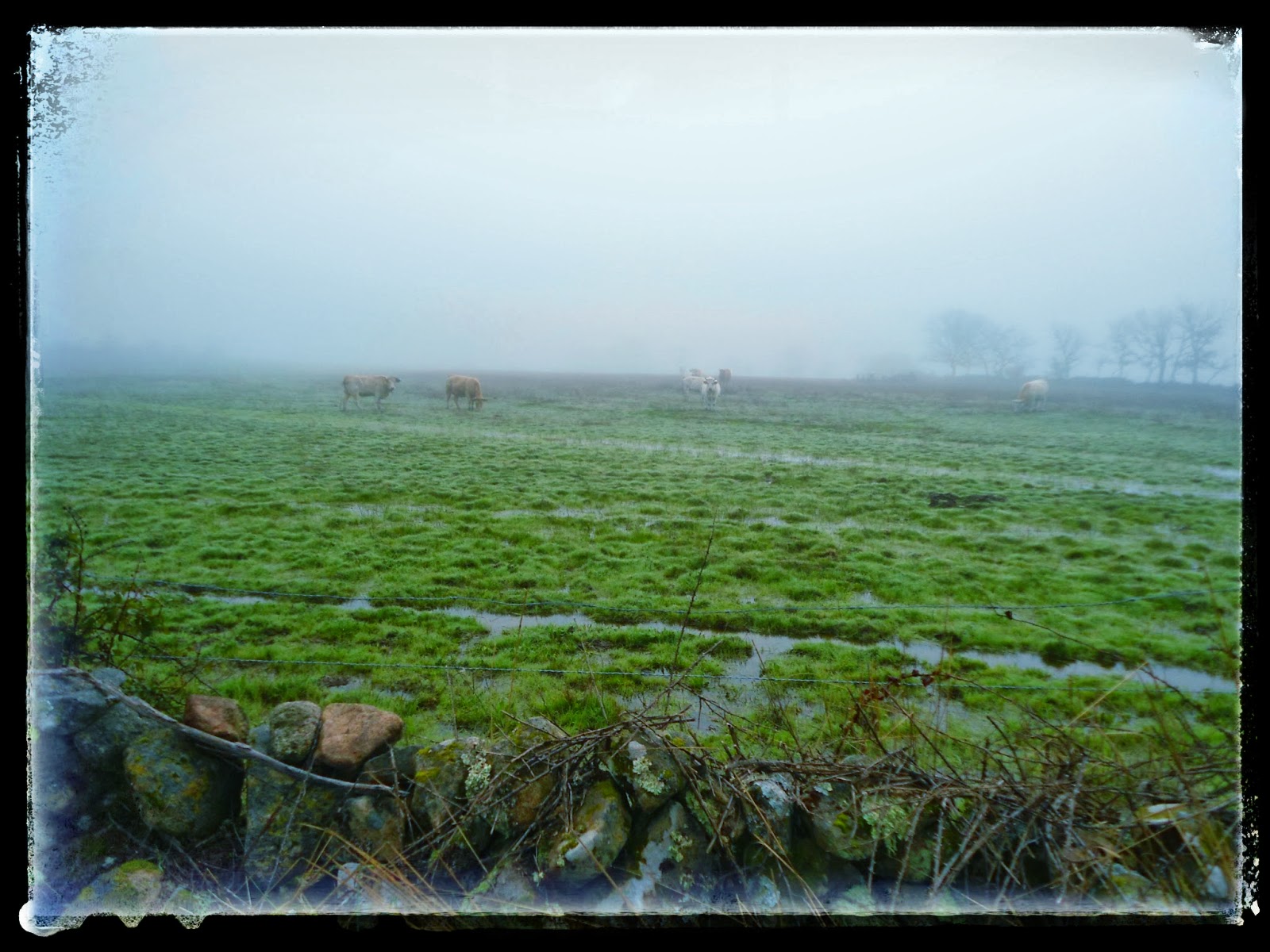 Já na aproximação a Nisa, ainda com algum nevoeiro, um olhar sobre uma manada de vacas que pareciam flutuar sobre um arrozal.
